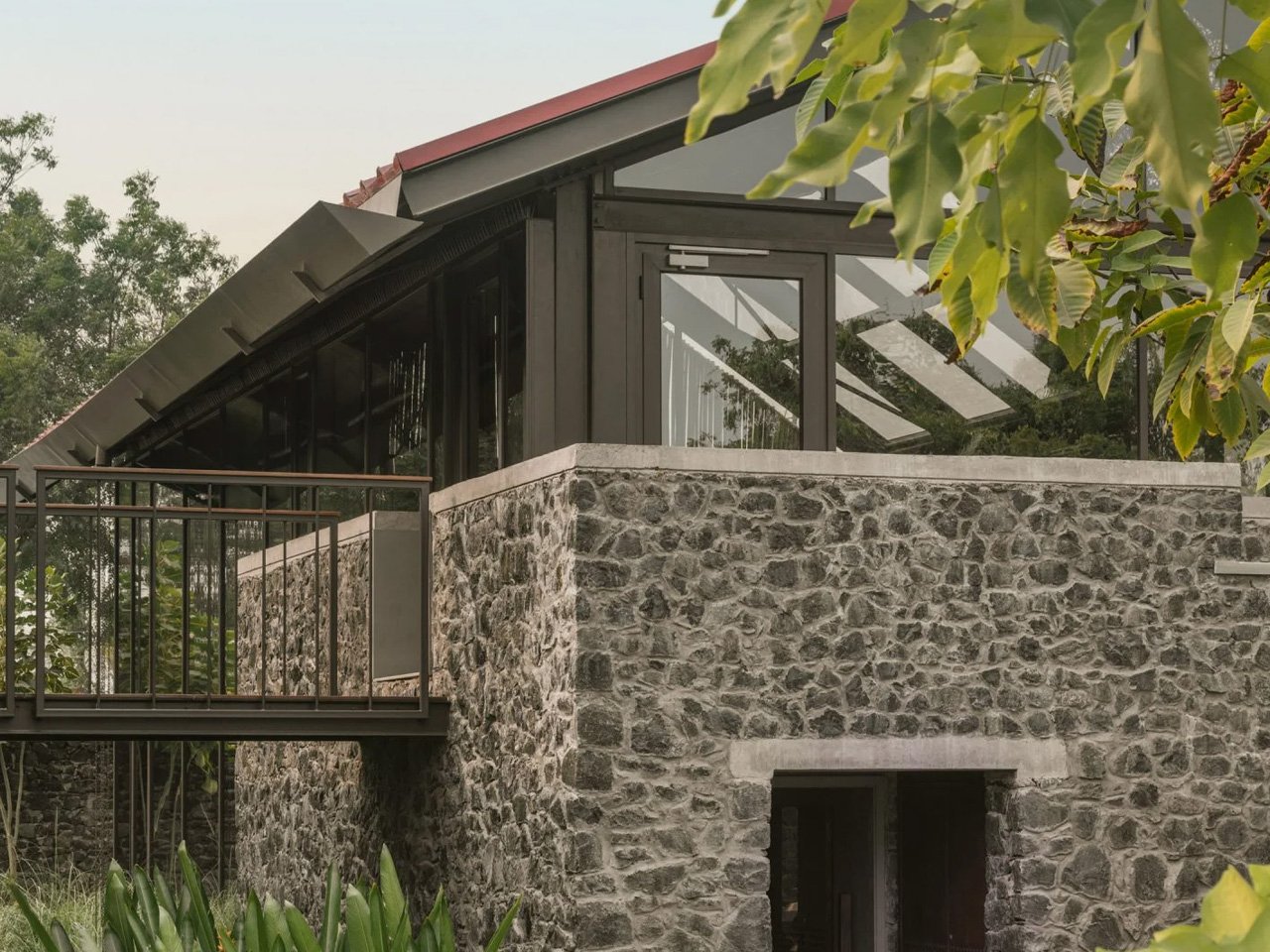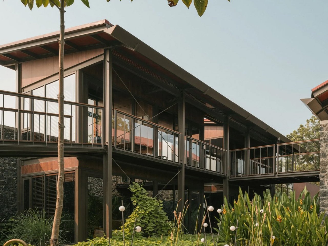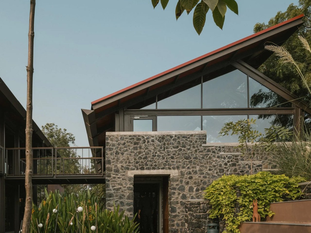 • Un espace de travail moderne appelé Oasis, conçu par Studio Saransh à Ahmedabad, s'étend sur 1 170 m² et combine basalte noir et acier pour un style distinctif.