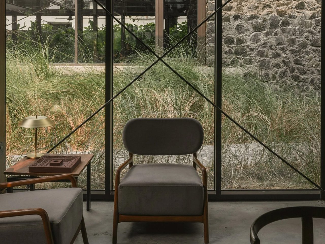 • Un étang de nénuphars au centre de la cour et une végétation stratégique créent une ambiance apaisante tout en régulant naturellement la température.