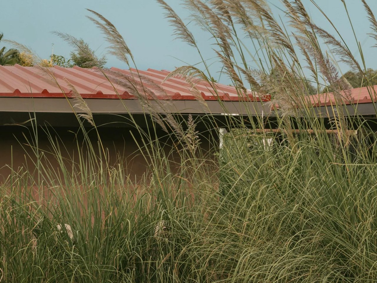 L’entrée du campus est délibérément séparée des principaux bâtiments, guidant le personnel le long d’un mur de débris recouvert de bougainvilliers avant d’arriver à leur bureau. Ce chemin crée une sensation d’arrivée et une transition vers l’espace de travail.