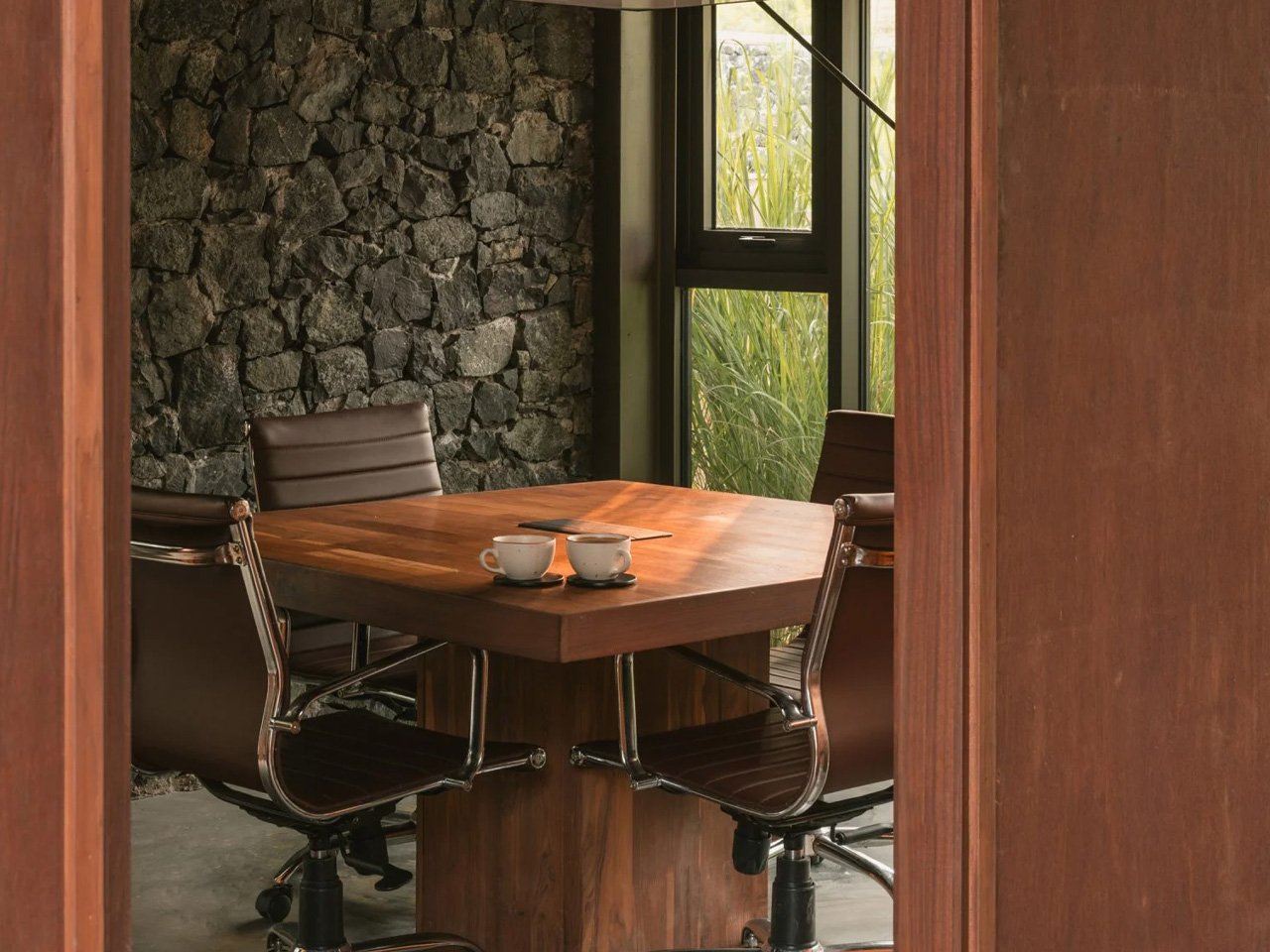 Sur le côté est de la cour en contrebas, une série de blocs plus petits est agencée de manière réfléchie pour soutenir les opérations quotidiennes du campus. Cela comprend un bloc de services, un bloc administratif et un groupement de salles de réunion. Les salles de réunion sont positionnées pour donner sur une cour isolée dans le coin nord-est du site, où des rangées de citronnelle ajoutent une touche de verdure et de parfum à l’environnement, créant une atmosphère apaisante pour les rassemblements et les discussions.